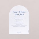 Deze trouwkaart wordt gekenmerkt door zijn afgeronde bovenranden in de vorm van een boog en kan aan de voor- en achterkant worden gepersonaliseerd met de details van jullie trouwdag.
