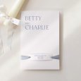 Deze trouwkaart wordt gekenmerkt door zijn afgeronde bovenranden in de vorm van een boog en kan aan de voor- en achterkant worden gepersonaliseerd met de details van jullie trouwdag.