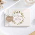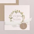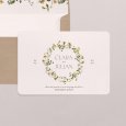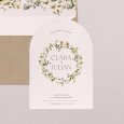 Met zijn delicate krans van bloemen in zonnige tinten kondigt de trouwkaart Adriana een prachtige zomerdag aan die je niet mag missen.