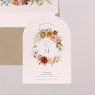 Deze trouwkaart wordt gekenmerkt door zijn afgeronde bovenranden in de vorm van een boog en kan aan de voor- en achterkant worden gepersonaliseerd met de details van jullie trouwdag.