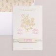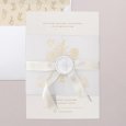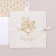 De Richelieu trouwkaart straalt een tijdloze romantiek uit en geeft een boeket in een antieke vaas weer. Deze vernieuwende creatie, waarop jullie namen in goudfolie schitteren, leent zich perfect voor een chique huwelijksreceptie.