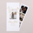 Deze trouwkaart heeft een origineel bladwijzerformaat. Ontdek aan de binnenkant een fotostrip die plek geeft aan een aantal leuke kiekjes van jullie samen. Het is een mooie reminder voor je gasten dat jullie trouwdag er aan komt. De fotostrip kan door jullie vrienden en familie opgeplakt worden op de koelkast of gebruikt worden als boekenlegger.