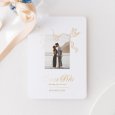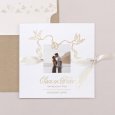 Op de Sparrow trouwkaart brengen twee vogels op symbolische wijze de trouwringen met zich mee. Deze verfijnde creatie wordt nog extra versierd met een gouden afwerking, en is perfect om op een romantische en elegante manier jullie jawoord aan te kondigen.