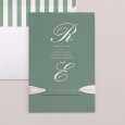 Minimalistisch en chic tegelijk, toont de Canterbury-trouwkaart de initialen van het bruidspaar in prachtige kalligrafie. Een creatie in zachte groentinten, ideaal om een elegante bruiloft te vieren. Kleuren: Groen, Wit Thema: Chic, Minimalistisch