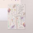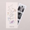 Deze trouwuitnodiging is een staande kaart met een centraal paneel en twee zijpanelen die openvouwen om de belangrijkste details van jullie speciale dag te onthullen. De zijpanelen kunnen gesloten blijven met een mooi lint (optioneel).