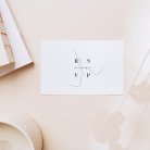 Als aansluitend item voor jullie trouwkaart, geeft deze RSVP-kaart jullie gasten de gelegenheid om hun aanwezigheid snel en gemakkelijk te bevestigen. Zo krijg je een mooi overzicht van het aantal deelnemende volwassenen en kinderen, de dieetwensen en op welke hits er graag geswingd mag worden!