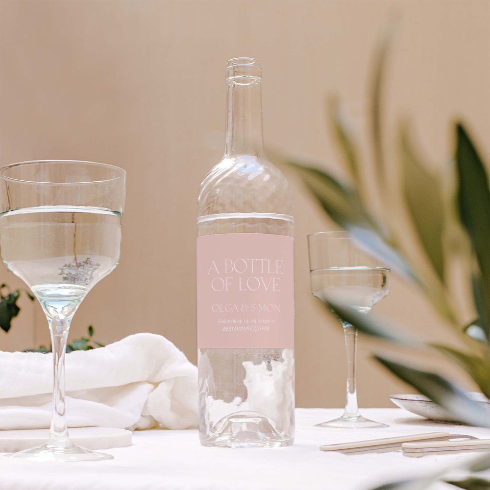 Een etiket op elke wijnfles: een mooie, aangeklede tafel en een leuk souvenirtje aan deze prachtige dag voor jullie gasten.