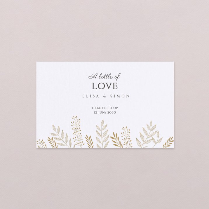 Versier jullie tafels met onze wijnetiketten in dezelfde stijl als jullie trouwkaarten.
