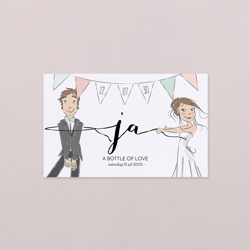Versier jullie tafels met onze wijnetiketten in dezelfde stijl als jullie trouwkaarten.