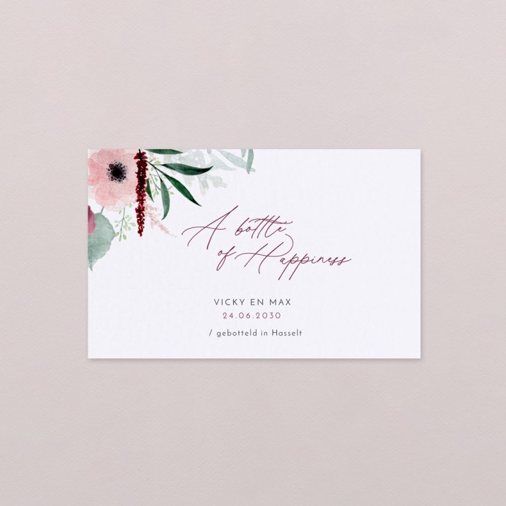 Versier jullie tafels met onze wijnetiketten in dezelfde stijl als jullie trouwkaarten.