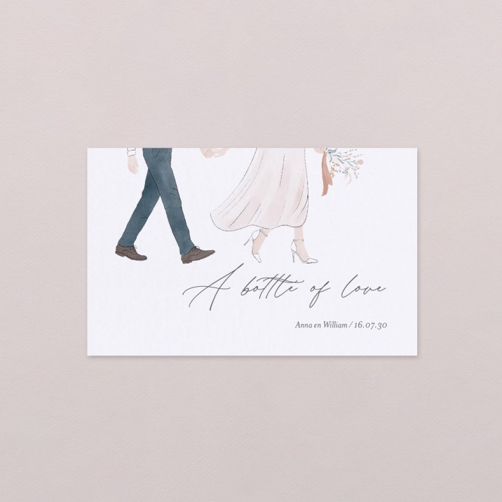 Versier jullie tafels met onze wijnetiketten in dezelfde stijl als jullie trouwkaarten.