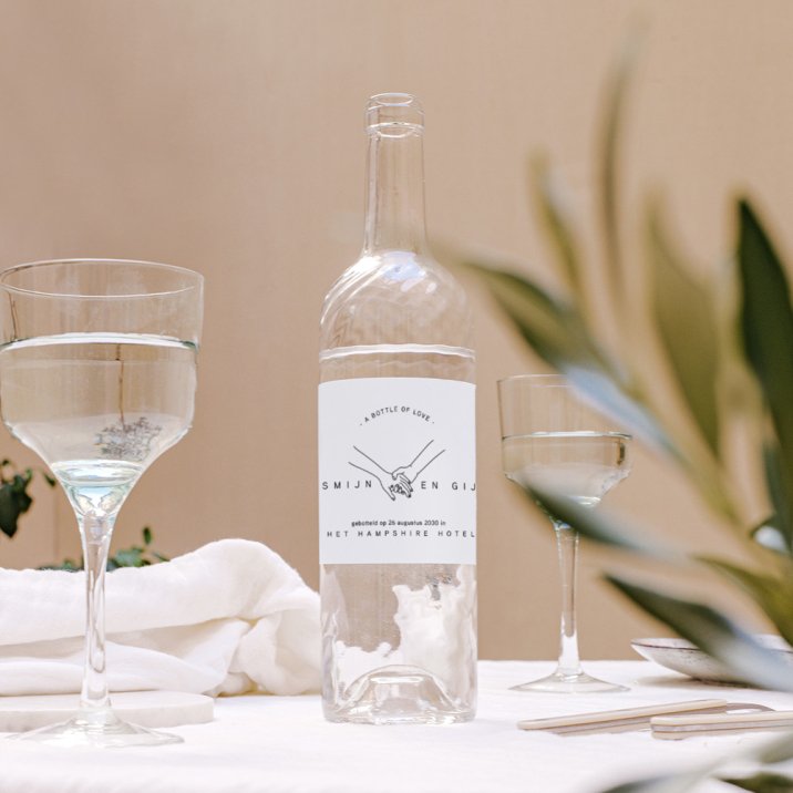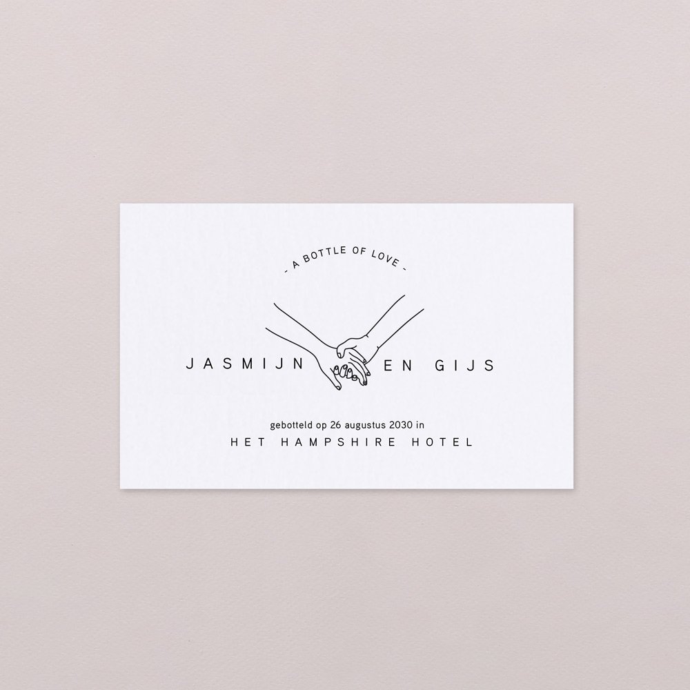 Een etiket op elke wijnfles: een mooie, aangeklede tafel en een leuk souvenirtje aan deze prachtige dag voor jullie gasten.