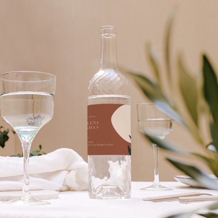 Versier jullie tafels met onze wijnetiketten in dezelfde stijl als jullie trouwkaarten.