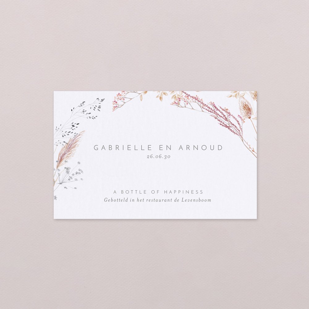 Versier jullie tafels met onze wijnetiketten in dezelfde stijl als jullie trouwkaarten.