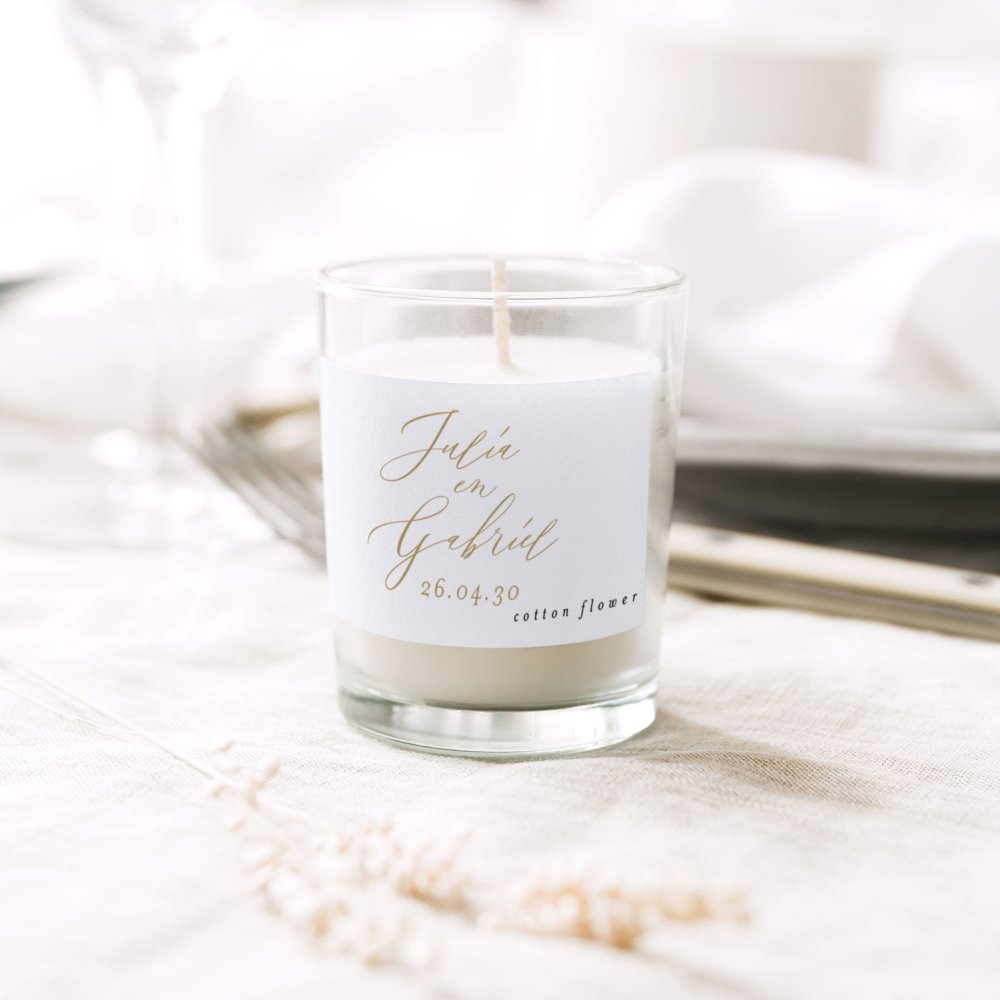 Laat de herinnering aan jullie huwelijk stralen bij jullie gasten met deze gepersonaliseerde kleine kaars. Met zijn heerlijke vijgengeur is dit trouwbedankje een prachtige uitnodiging om die emotionele momenten dagelijks te herbeleven.