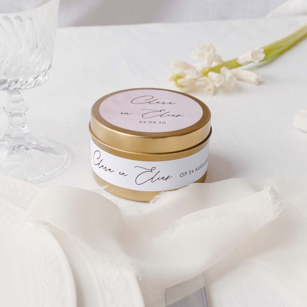 Deze gouden geurkaars is een ideaal trouwbedankje tijdens je bruiloft! Met zijn subtiele parfum van vijgenboom, zal dit kleine cadeautje jullie gasten nog lang laten nagenieten van deze bijzondere dag.