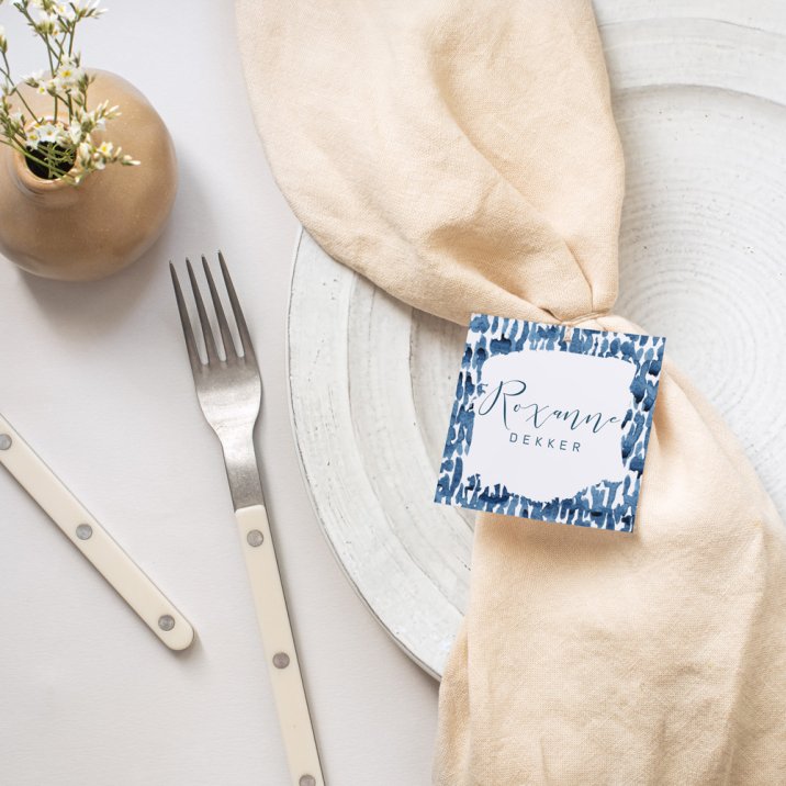 Bind de kaartjes met een juten koord aan de menukaart en schuif het geheel in een mooie servet zodat jullie gasten makkelijk hun plaats vinden. Bonus: een prachtige aangeklede tafel.