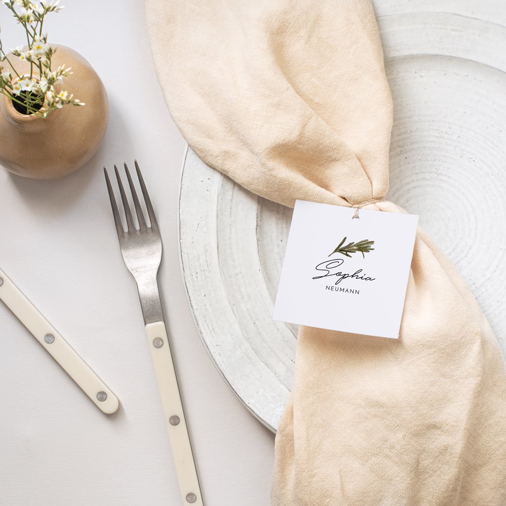 Bind de kaartjes met een juten koord aan de menukaart en schuif het geheel in een mooie servet zodat jullie gasten makkelijk hun plaats vinden. Bonus: een prachtige aangeklede tafel.