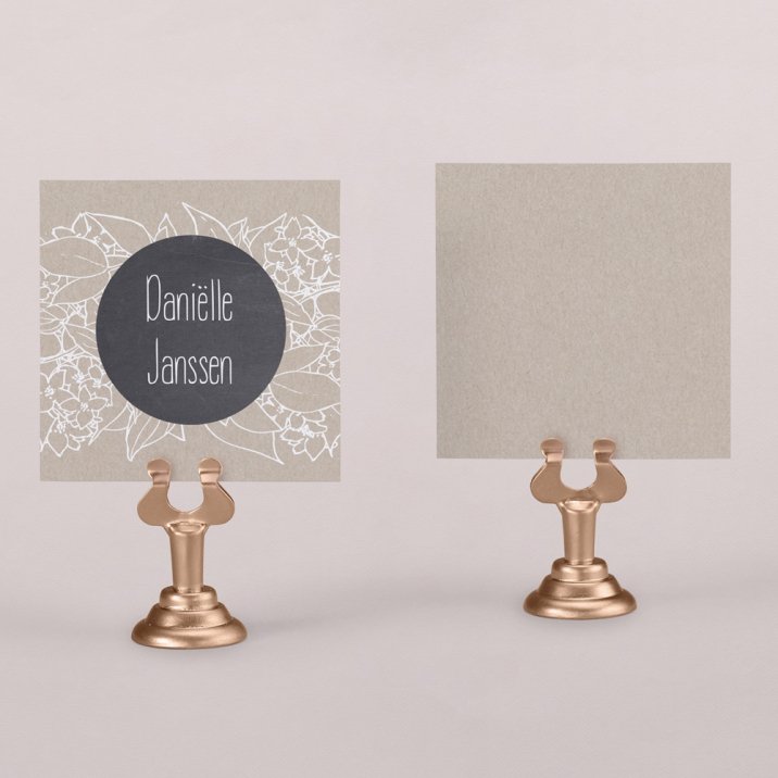 Help jullie gasten makkelijk en snel hun plaats vinden met onze tafelkaartjes. De voorkant en achterkant van deze kaartjes zijn te personaliseren.