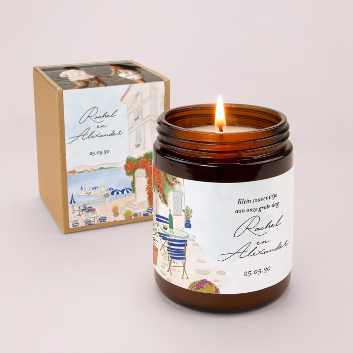 Laat de herinnering aan jullie bruiloft stralen met deze apothekerskaars. De subtiele vijgentonen en het nostalgische ontwerp maken het tot een schitterend geschenk voor de huwelijksgasten.