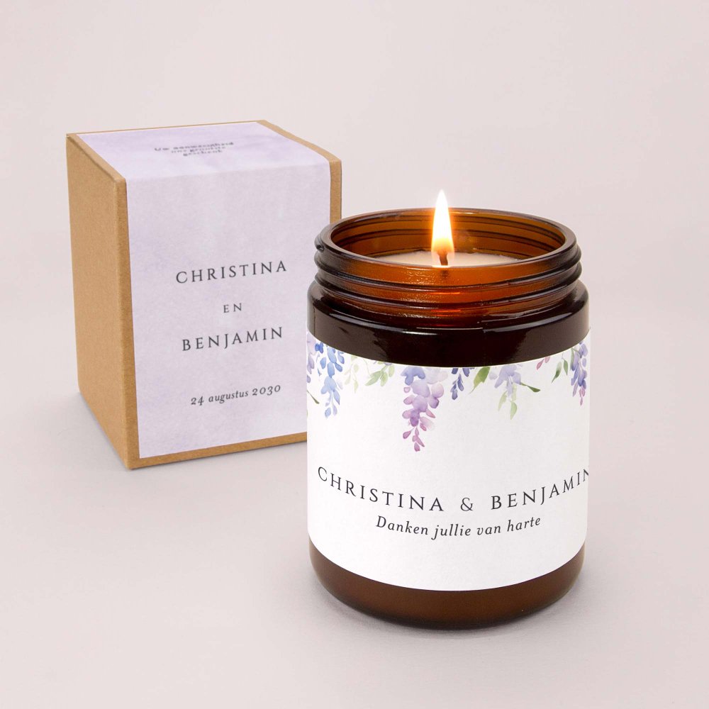 Laat de herinnering aan jullie bruiloft stralen met deze apothekerskaars. De subtiele vijgentonen en het nostalgische ontwerp maken het tot een schitterend geschenk voor de huwelijksgasten.