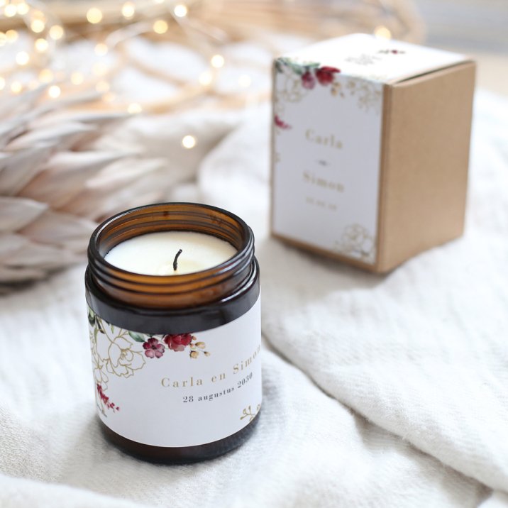 Laat de herinnering aan jullie bruiloft stralen met deze apothekerskaars. De subtiele vijgentonen en het nostalgische ontwerp maken het tot een schitterend geschenk voor de huwelijksgasten.