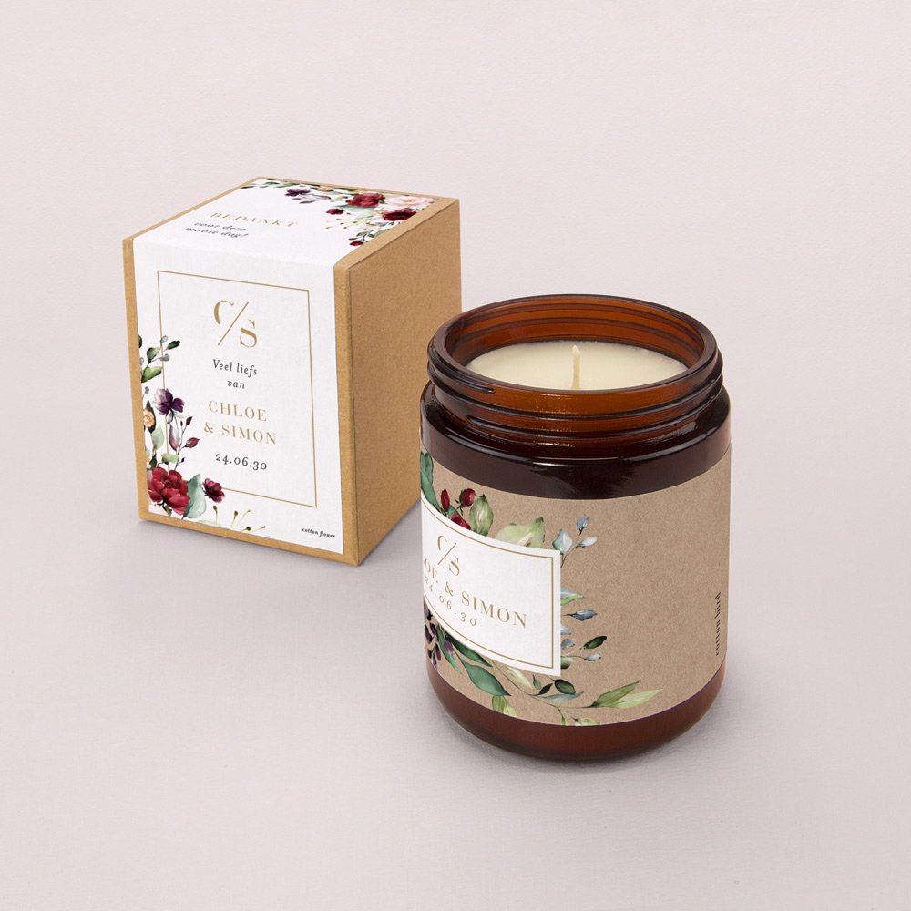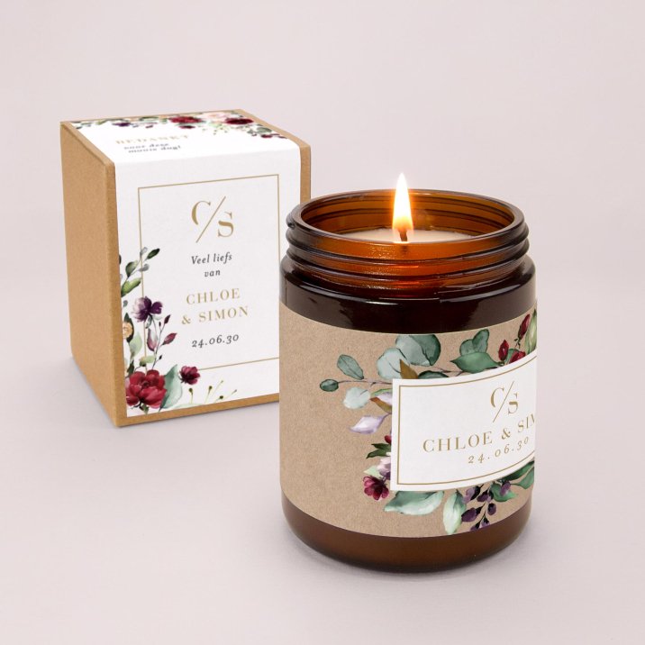 Laat de herinnering aan jullie bruiloft stralen met deze apothekerskaars. De subtiele vijgentonen en het nostalgische ontwerp maken het tot een schitterend geschenk voor de huwelijksgasten.