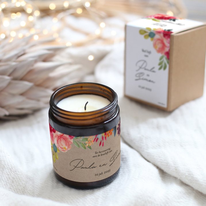 Laat de herinnering aan jullie bruiloft stralen met deze apothekerskaars. De subtiele vijgentonen en het nostalgische ontwerp maken het tot een schitterend geschenk voor de huwelijksgasten.