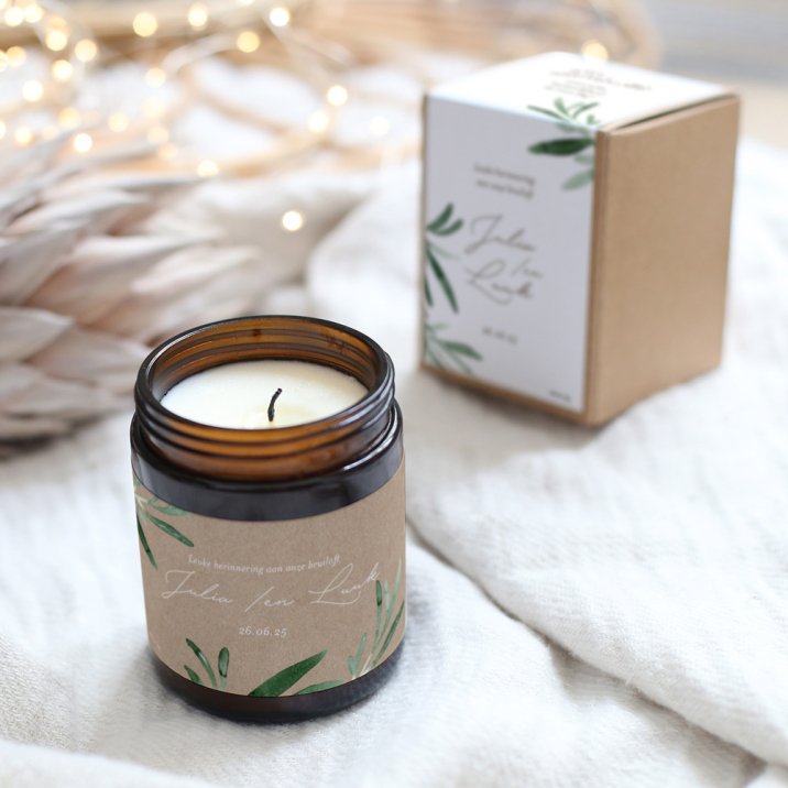 Laat de herinnering aan jullie bruiloft stralen met deze apothekerskaars. De subtiele vijgentonen en het nostalgische ontwerp maken het tot een schitterend geschenk voor de huwelijksgasten.