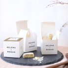 Een verrassingsdoosje als cadeautje voor je familie en vrienden, een mooie herinnering aan jullie bruiloft. Een kleine kubus van 5,4 x 5,4 cm waarin verschillende soorten lekkernijen kunnen. Laat je creativiteit de vrije loop!