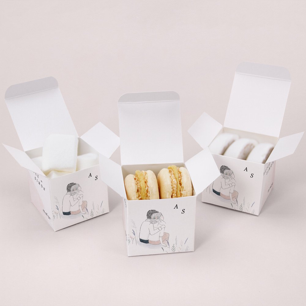 Een verrassingsdoosje als cadeautje voor je familie en vrienden, een mooie herinnering aan jullie bruiloft. Een kleine kubus van 5,4 x 5,4 cm waarin verschillende soorten lekkernijen kunnen. Laat je creativiteit de vrije loop!