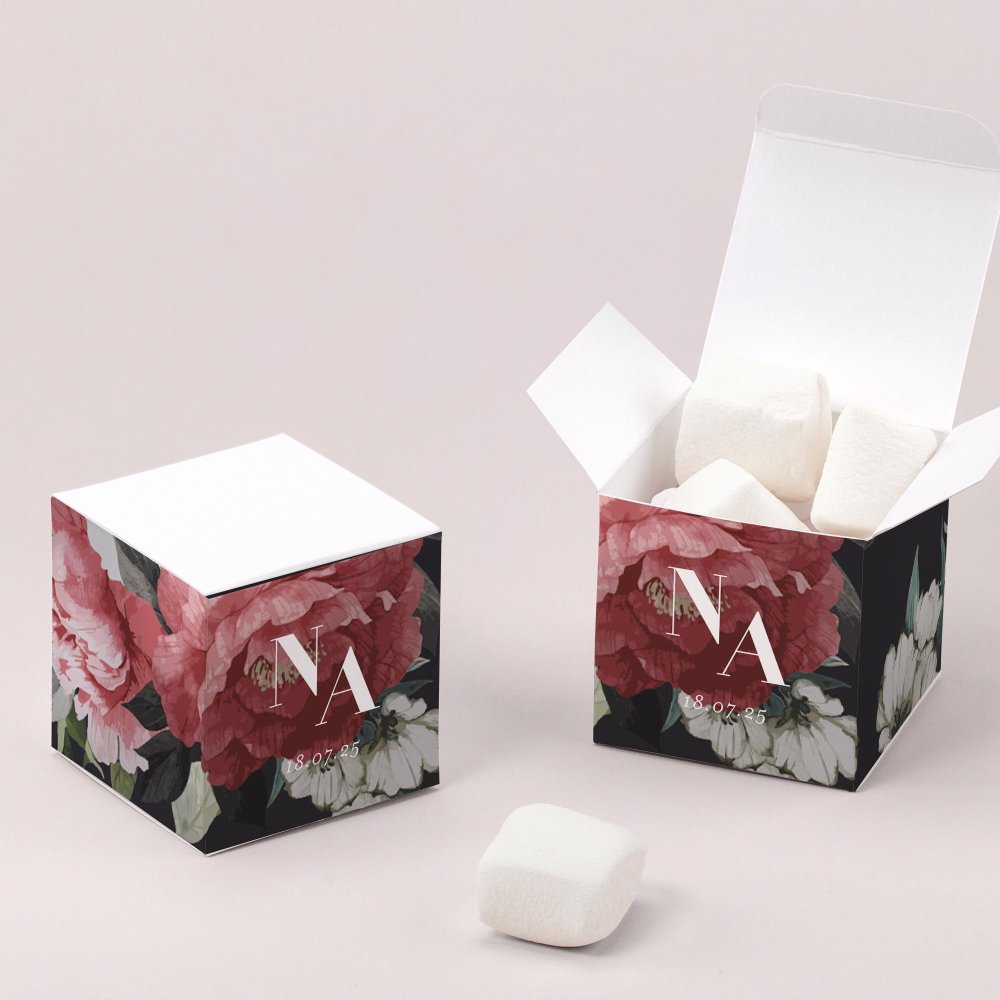 Een verrassingsdoosje als cadeautje voor je familie en vrienden, een mooie herinnering aan jullie bruiloft. Een kleine kubus van 5,4 x 5,4 cm waarin verschillende soorten lekkernijen kunnen. Laat je creativiteit de vrije loop!
