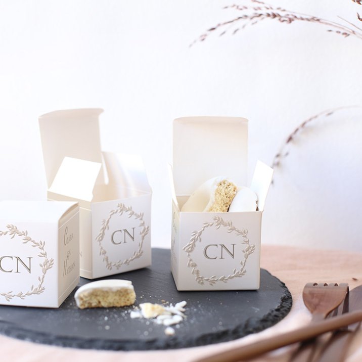 Een verrassingsdoosje als cadeautje voor je familie en vrienden, een mooie herinnering aan jullie bruiloft. Een kleine kubus van 5,4 x 5,4 cm waarin verschillende soorten lekkernijen kunnen. Laat je creativiteit de vrije loop!
