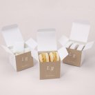 Een verrassingsdoosje als cadeautje voor je familie en vrienden, een mooie herinnering aan jullie bruiloft. Een kleine kubus van 5,4 x 5,4 cm waarin verschillende soorten lekkernijen kunnen. Laat je creativiteit de vrije loop!