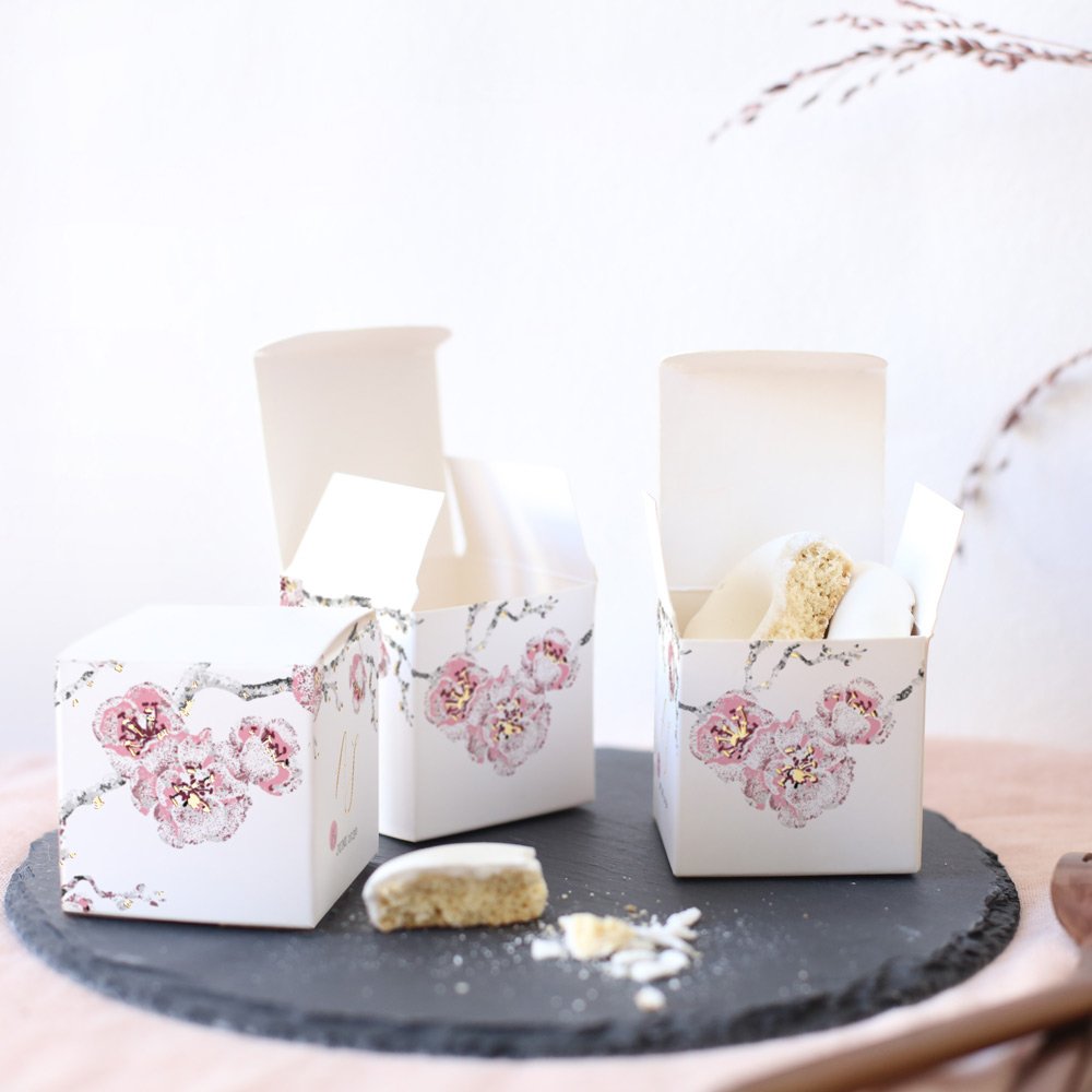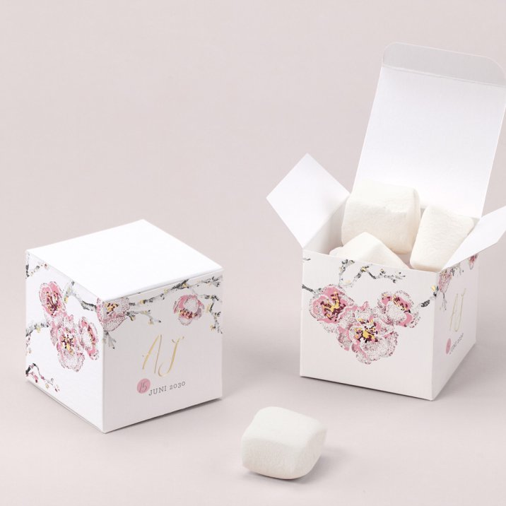 Een verrassingsdoosje als cadeautje voor je familie en vrienden, een mooie herinnering aan jullie bruiloft. Een kleine kubus van 5,4 x 5,4 cm waarin verschillende soorten lekkernijen kunnen. Laat je creativiteit de vrije loop!
