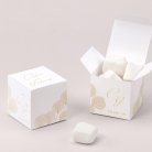 Een verrassingsdoosje als cadeautje voor je familie en vrienden, een mooie herinnering aan jullie bruiloft. Een kleine kubus van 5,4 x 5,4 cm waarin verschillende soorten lekkernijen kunnen. Laat je creativiteit de vrije loop!