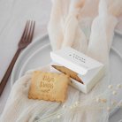 De koekjesdoos is speciaal ontworpen en gemaakt om jullie gasten te verrassen met een smakelijk cadeautje! Personaliseer het doosje met een lief berichtje, foto of jullie namen.In 1 doosje kunnen 3 of 4 koekjes, afhangend van de dikte van het koekje.
