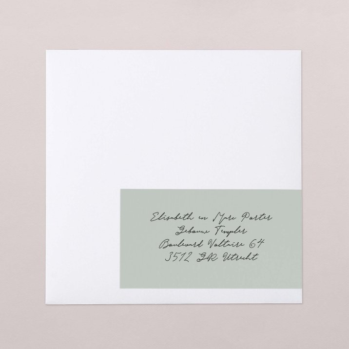 Jullie adres wordt afgedrukt op de rechterkant (dit deel komt op de achterkant van de envelop), dus je hoeft alleen de adressen van je gasten aan de linkerkant te schrijven om ze te verzenden!