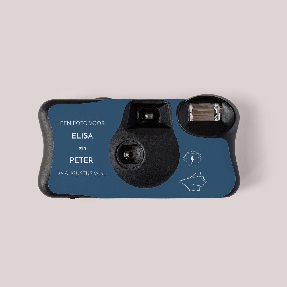 Versier de wegwerpcamera voor je bruiloft met een zelfklevend etiket dat geheel te personaliseren valt. Op die manier past de camera volledig bij het thema dat jullie kozen voor jullie speciale dag!