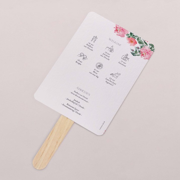 De programma waaiers zetten de toon voor de ceremonie, houden jullie gasten op de hoogte van het dagprogramma en ... zijn erg handig bij warm weer!