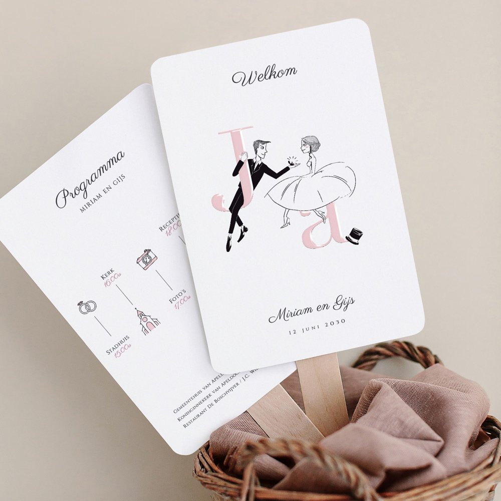 De programma waaiers zetten de toon voor de ceremonie, houden jullie gasten op de hoogte van het dagprogramma en ... zijn erg handig bij warm weer!