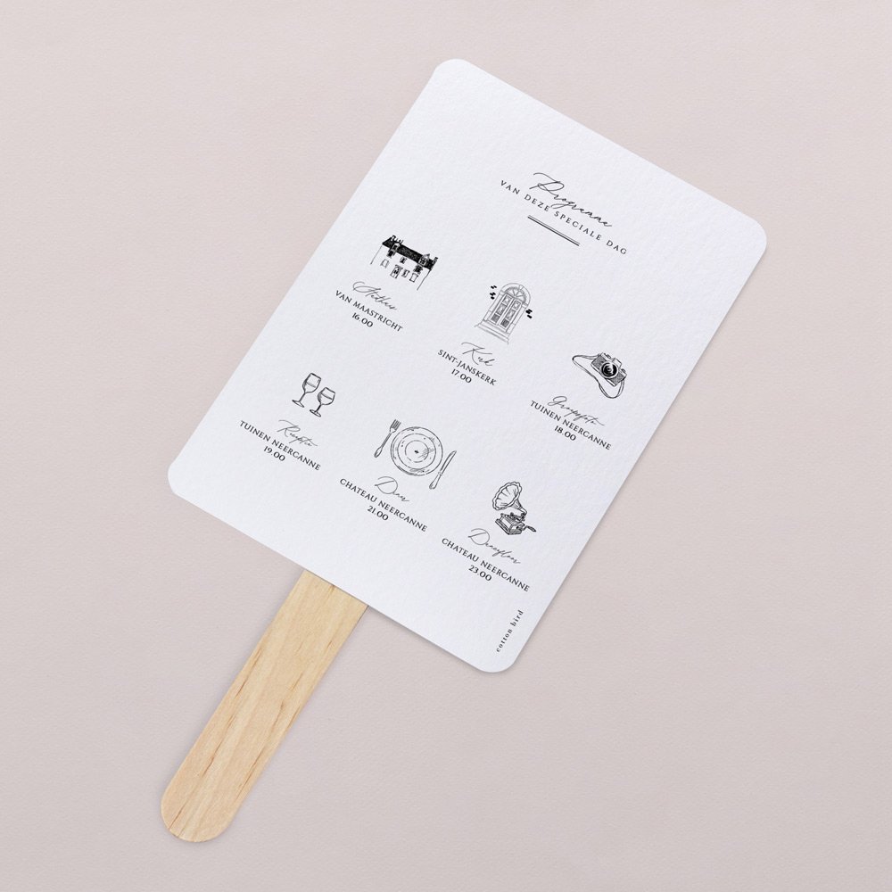 De programma waaiers zetten de toon voor de ceremonie, houden jullie gasten op de hoogte van het dagprogramma en ... zijn erg handig bij warm weer!