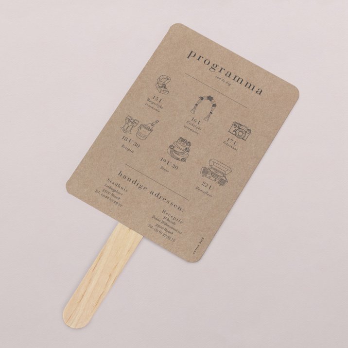 De programma waaiers zetten de toon voor de ceremonie, houden jullie gasten op de hoogte van het dagprogramma en ... zijn erg handig bij warm weer!