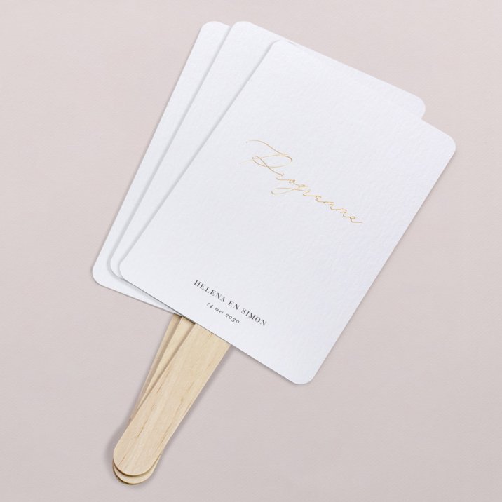 De programma waaiers zetten de toon voor de ceremonie, houden jullie gasten op de hoogte van het dagprogramma en ... zijn erg handig bij warm weer!