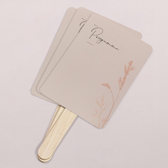 De programma waaiers zetten de toon voor de ceremonie, houden jullie gasten op de hoogte van het dagprogramma en ... zijn erg handig bij warm weer!