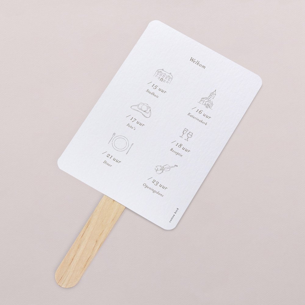 De programma waaiers zetten de toon voor de ceremonie, houden jullie gasten op de hoogte van het dagprogramma en ... zijn erg handig bij warm weer!