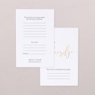 De eerste gasten komen aan en graag laten jullie ze weten hoe de dag eruit gaat zien. Geef ze een leuke programma waaier met daarop de plannen voor de dag en avond. En wordt de spanning zelfs de gasten teveel, of trouwen jullie onder tropische omstandigheden, dan gebruiken de gasten de waaier om voor wat verkoeling te zorgen. De huwelijksceremonie is voltrokken en je partner en jij stappen de kerk of het gemeentehuis uit als kersverse echtgenoten. Hoe leuk is het als dat gevierd wordt door jullie gasten met het gooien van de vrolijkste confetti. De confetti koop je in allerlei vormen en kleuren, geheel passend bij het thema van de huwelijksdag! En door naar de feestlocatie waar je de gasten welkom heet met een bruiloft bord met een persoonlijke boodschap. Tijdens het feest krijgen de gasten de gelegenheid hun boodschap over te brengen via een invulkaart. Dit biedt ook ruimte om te vertellen hoe je gasten het feest beleven. De invulkaarten bekijk je na de huwelijksdag waardoor je nog heel lang nageniet van de mooiste dag van je leven! Bij Cotton Bird helpen we je met deze keuze.