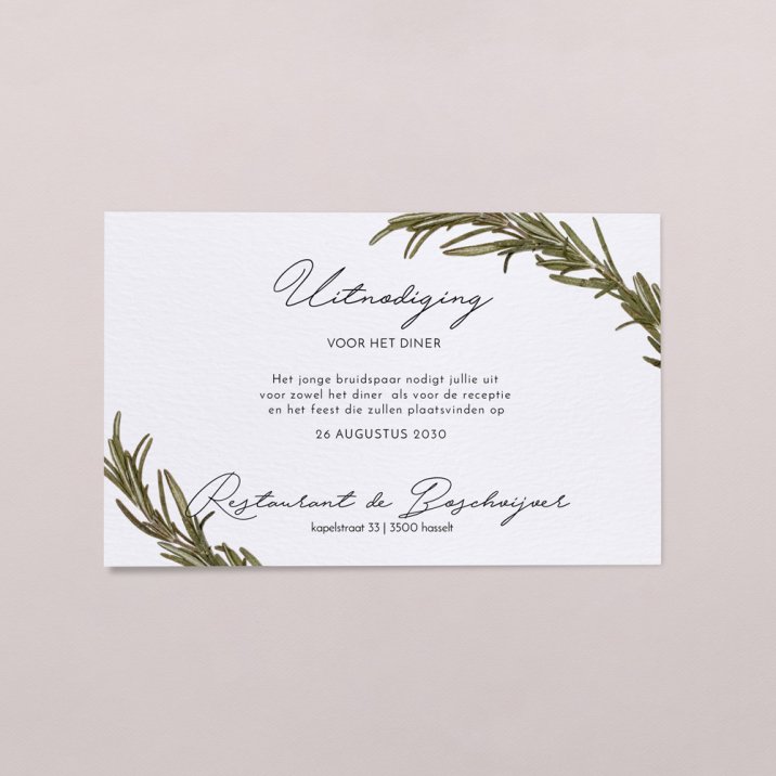 Jullie willen je trouwdiner of trouwfeest intiem houden? Nodig via deze kaartjes jullie meest dierbaren uit te blijven na de algemene receptie.