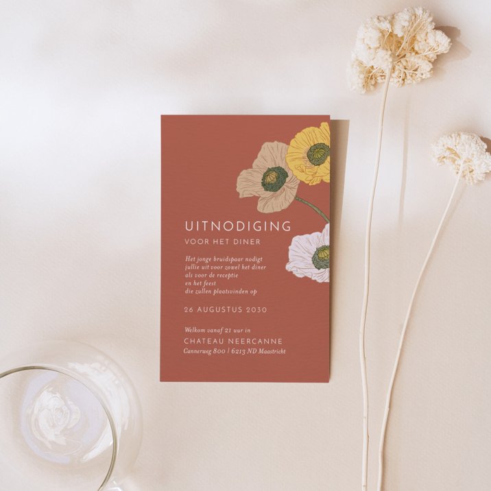 Jullie willen je trouwdiner of trouwfeest intiem houden? Nodig via deze kaartjes jullie meest dierbaren uit te blijven na de algemene receptie.