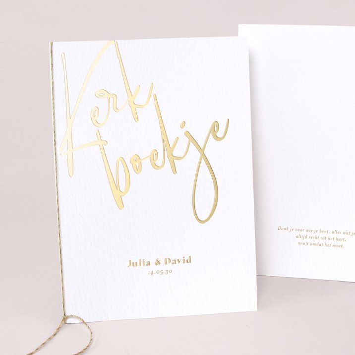 Hoesje voor jullie kerkboekje in de kleuren van jullie trouwkaart. Versierd met een lintje naar keuze (optioneel). De papieren in de binnenkant worden niet meegeleverd.